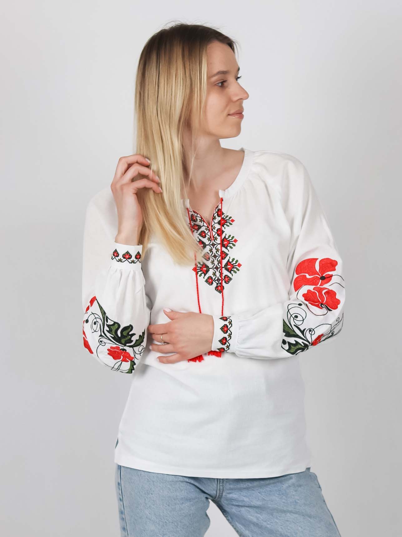 Каталог > Одяг > Етнічний одяг > Дорослі вишиванки > Лляна жіноча вишиванка “Маки” , Білий, M
