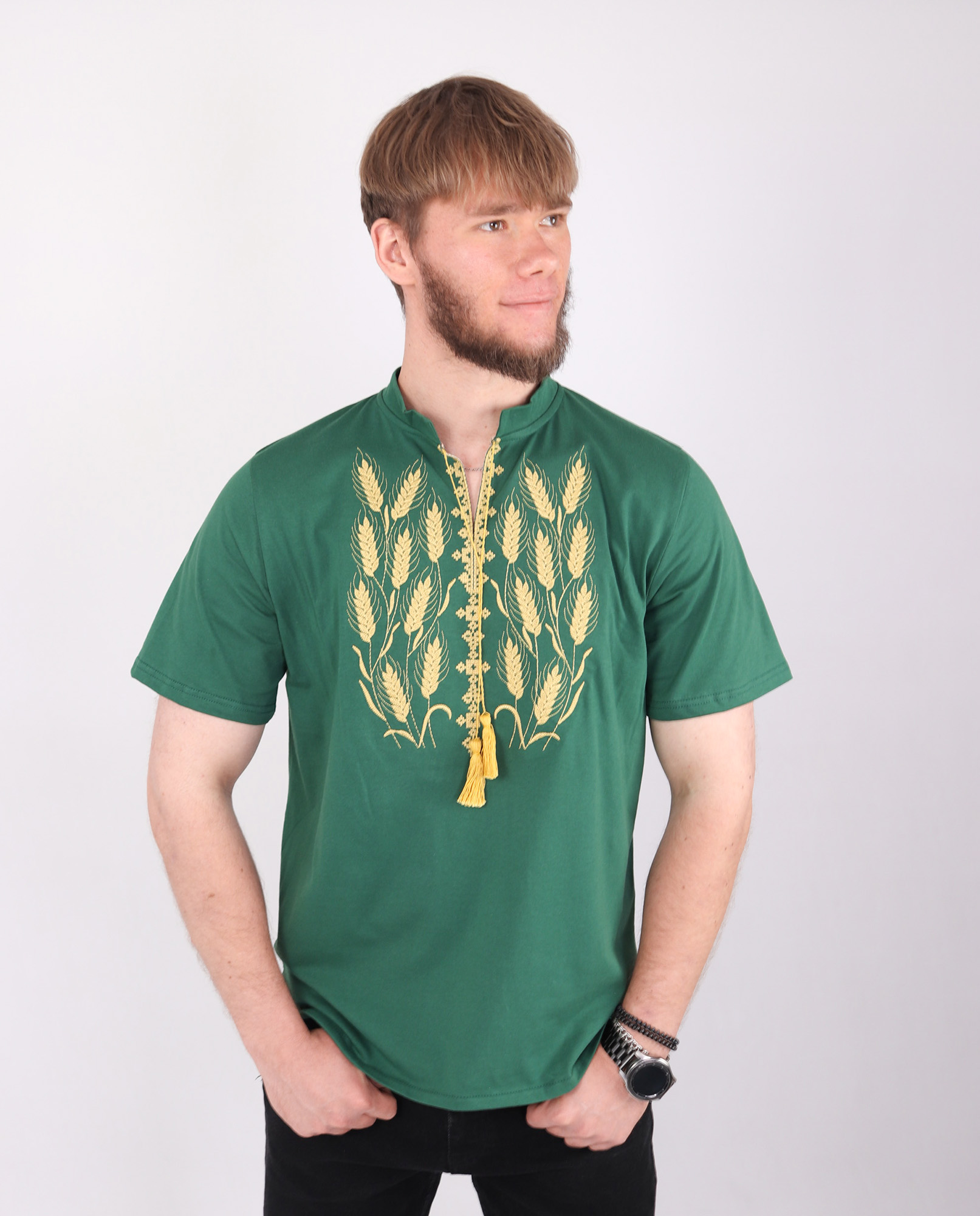Каталог > Одяг > Етнічний одяг > Дорослі вишиванки > Чоловіча футболка вишиванка “Колоски”, Зелений, XXXL